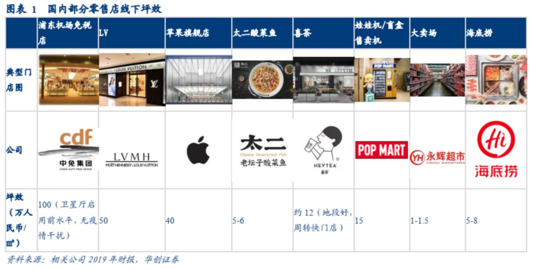 而以高翻台率著称的海底捞坪效也就5-8万/平米,太二酸菜鱼是5-6万/平米,好地段周转快的喜茶店可以达到12万/平米。只有机场免税店,苹果旗舰店这个级别的商店能够稳稳超过12万的红线。