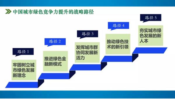 研究提出了推动中国城市绿色竞争力提升的途径:一是牢固树立绿色发展新理念;二是推进绿色金融新模式;三是发挥城市群协同发展新活力;四是推动绿色技术的新引领;五是夯实城市绿色发展的新人本。