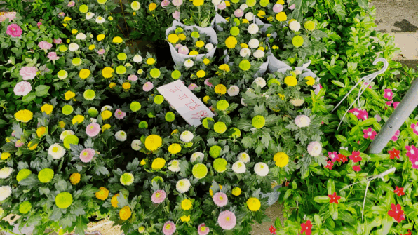 室内鲜花花市外面,沿铁路桥下面有一连串的盆栽花摊位,目测有几十家,一家挨着一家,几乎全是卖花花草草的,井然有序。