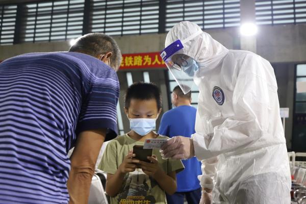 石龙镇委、镇政府担起属地责任,迅速细化落实工作要求,联合东莞站,镇交通分局牵头,联同镇卫健局、公安分局等职能部门展开场地布置、采样检测及防护设备工作。并发布紧急动员通知,号召石龙镇各机关单位人员在工作群中自行接龙报名参与到东莞站核酸检测志愿服务中。8月3日下午6点半起,由医护人员、党员代表、公安民警、志愿者、工作人员等各方力量组建而成的东莞站联合防疫队伍开始为旅客提供疏导、登记、采样服务,方便来莞返莞的市民完成核酸“三天两检”的首检。