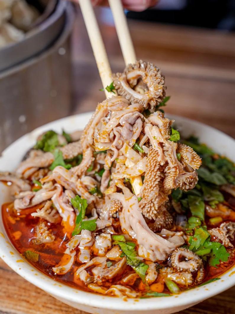 来贵阳必吃肠旺面,面条快速烫熟,码上肥肠血旺,浇上浓汤红油,除了标配的脆哨、豆腐,再加个煎蛋、卤蛋或是大排、辣鸡,堆满满一碗才过瘾。肥肠耙软,血旺滑嫩,汤底还带着点柴火香气。如此重口火辣的美食,居然是叫醒贵阳人的起早闹钟。