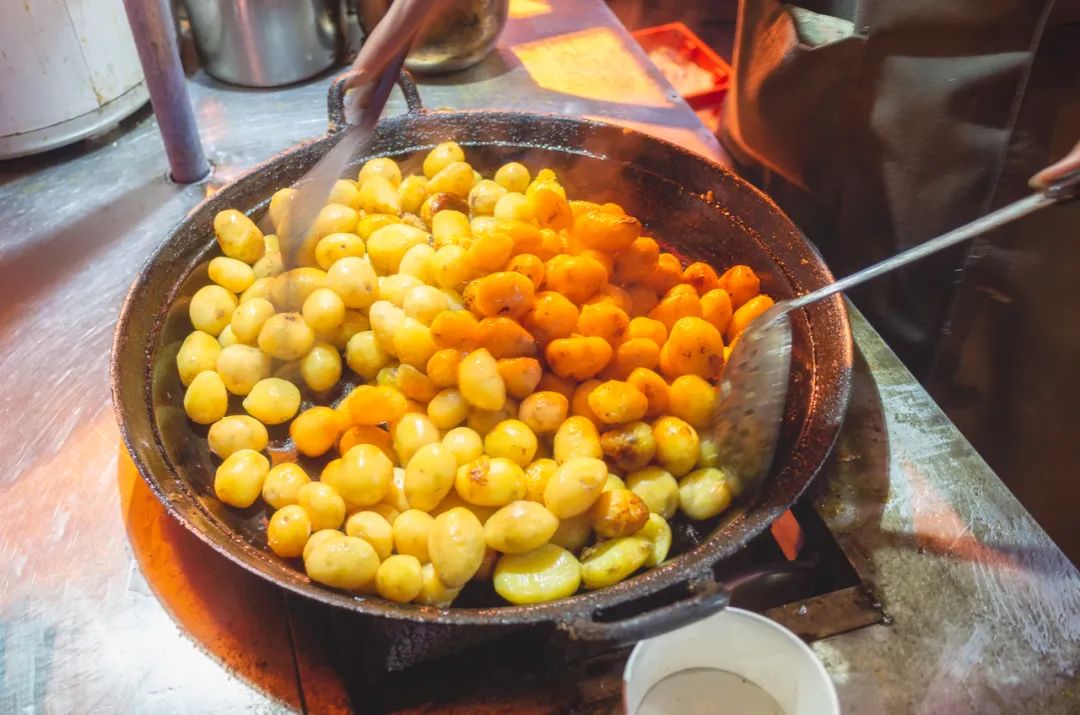 恩施小土豆也是必尝的,个头小,肉质更粉嫩、甘甜,口感沙糯。洗干净直接上锅蒸,薯肉如绿豆糕般绵密,不加任何调味都能尝到淡淡的甜味。不开玩笑地说,每年四月,恩施土豆成熟上架的日子,台台都一箱箱代购,土豆焖饭、炕土豆、每一道都绝。