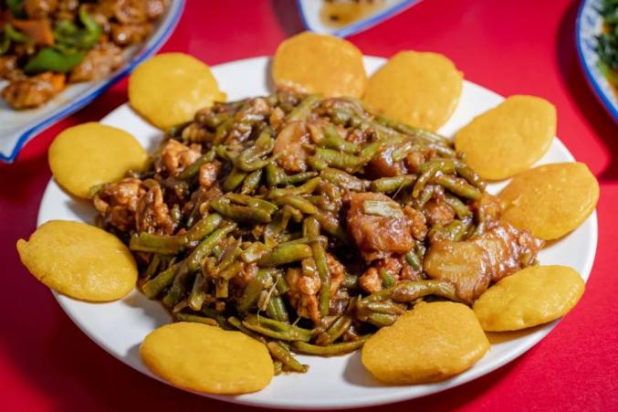尤其推荐一锅出,其实就是炖菜,豆角、土豆茄子和排骨猛炒后,加一点水文火慢炖,再在旁边贴一圈玉米饼,特别下饭。