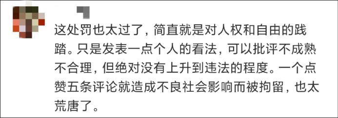 华东师范大学法学院副教授、上海市立法学研究会理事、北京盈科(上海)律师事务所律师孟凡壮对观察者网表示,“不当言论”的概念比较宽泛,既包括违法的言论也包括不恰当但不违法的言论。不过,行政拘留针对的言论必须是违法的言论,该处罚的合理性是有待商榷。