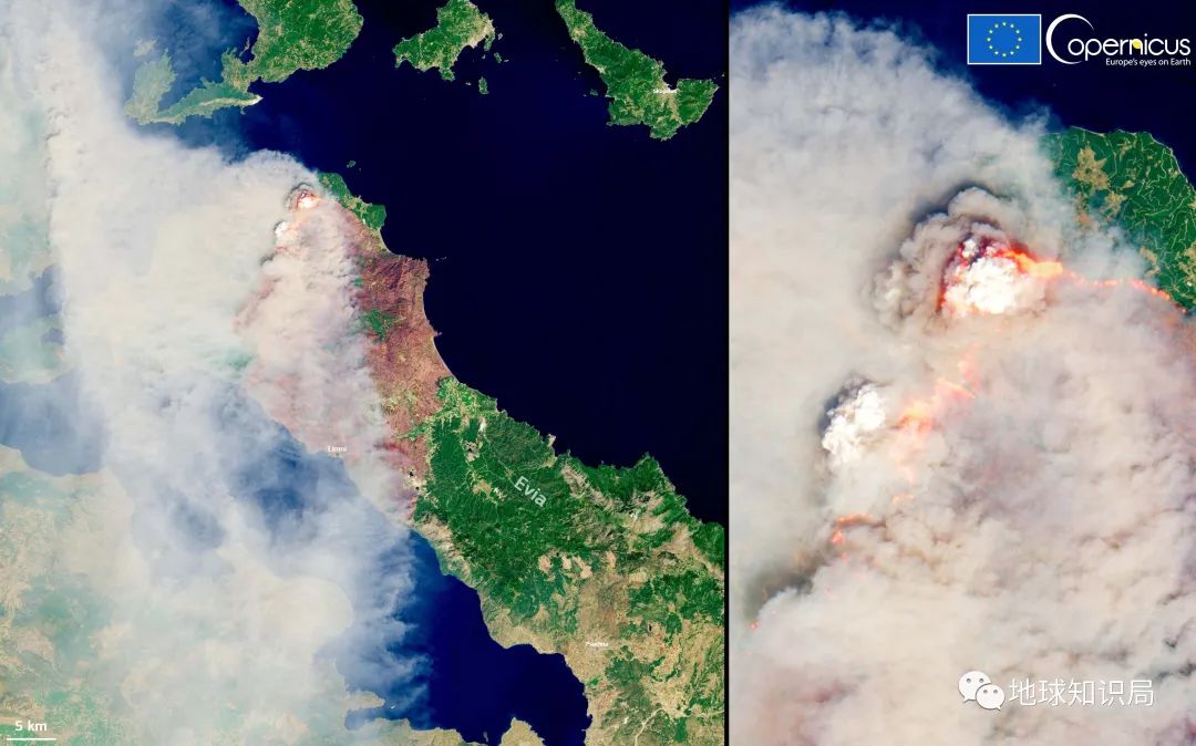 (希腊埃维亚岛,www.copernicus.eu/en)▼
