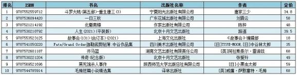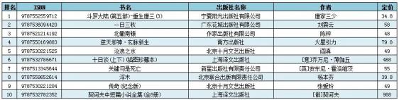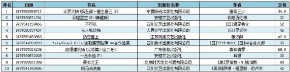 2种网文作品依旧热度不减,《斗破苍穹(57)(典藏版)》排名第7,《斗罗大陆(Ⅱ)-绝世唐门(45)(漫画版)》排名第10。