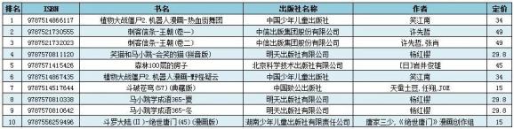 本次榜单前3名分别是《植物大战僵尸2.机器人漫画-热血街舞团》《刺客信条-王朝(卷一)》《刺客信条-王朝(卷二)》,均为漫画类图书。