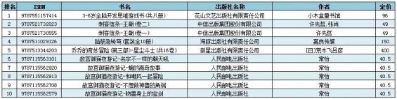 少儿类附表2:天猫书店7月虚构、非虚构、少儿类新书排行榜TOP10