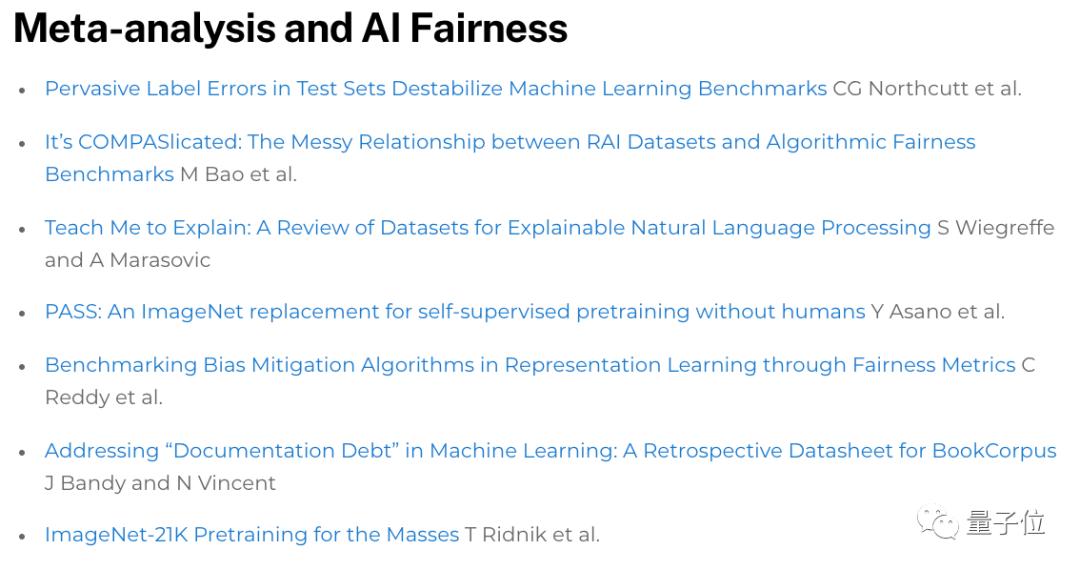 这次公布的内容包括一般数据集、NLP方向数据集、仿真环境和数据生成器、元分析和AI公平性、基准这五个方向。