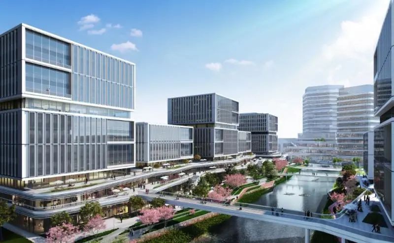 在青浦,距G50赵巷出口和崧泽大道约1.5公里、轨交17号线嘉松中路站出口处,就有这样一处“水景办公楼”,距离虹桥枢纽仅5站地铁。这个名为赵巷科技绿洲的园区,目前首批办公楼已交付并正式投入使用,建设用地约2.56万平方米,共有5幢7至12层不等的办公楼,未来将提供与水为邻的惬意办公环境。