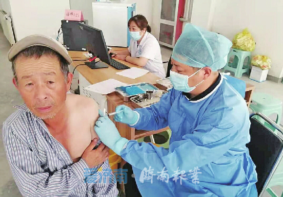 张旭东为居民接种疫苗。(李小梦 摄)