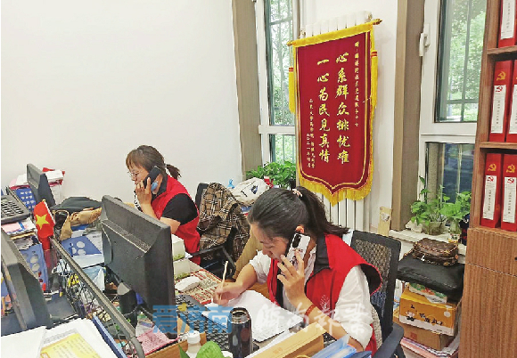 麟祥街社区工作人员进行防疫电话排查。(刘阳 摄)