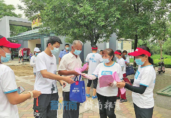 在疫情防控过程中,“e锦水”的志愿者们大显身手,他们不畏炎炎烈日走街串巷上门入户,身影出现在沿街商铺、居民小区、公园超市等场所,做防疫知识的传播者、健康文明的守护者,成为一道道靓丽的风景线。
