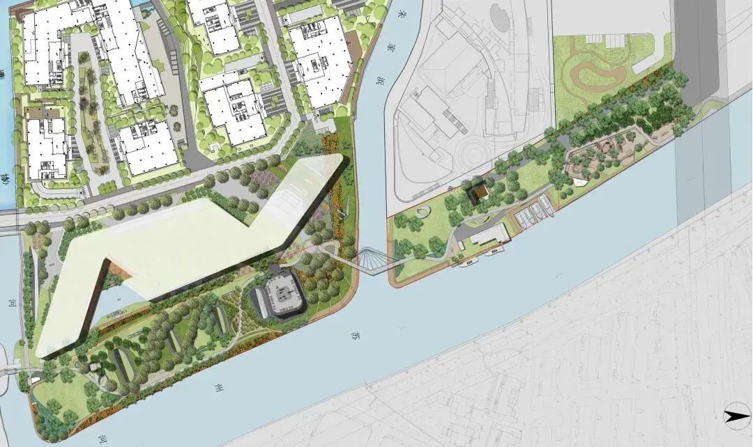 这段滨河岸线有两个场地特点,一是苏州河的3条支流纵泾港、朱家浜和通协河,丰富了滨河空间的“肌理”;二是绿地直接临河,进深50米宽,用地2.3万平方米,有充足的空间容纳休闲活动。这也促成了两处明星游览项目的诞生——三座景观桥和滑板公园。