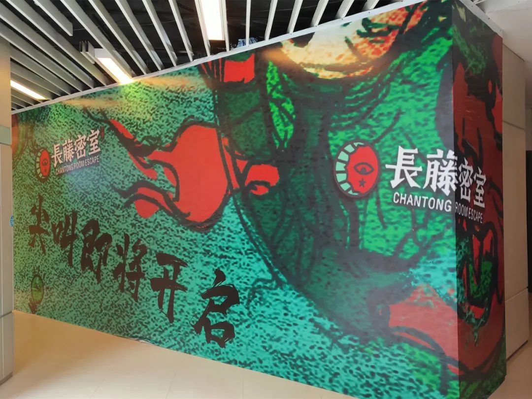 扶梯前方出现了成都赫赫有名的鬼屋——长藤密室,这难道是想用魔法打败魔法?