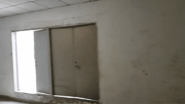 在夹层倒回头换另一个岔路走,能透过窗户看到一片废墟。