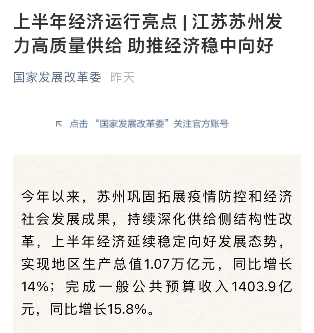 原标题:《国家发改委点赞!苏州经济很给力!》