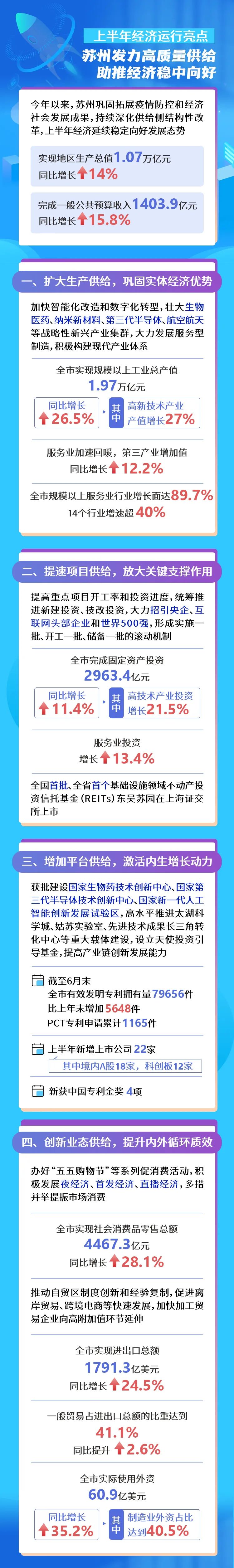 文章内容从多个维度肯定了今年上半年苏州发力高质量供给
