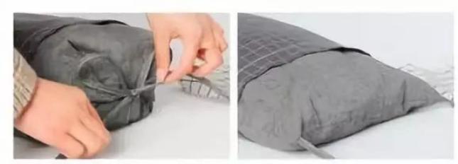 持续降低高度时,可自由取出部分填充物。松开绑带并且逐步降低可变10厘米高度——平铺低枕。