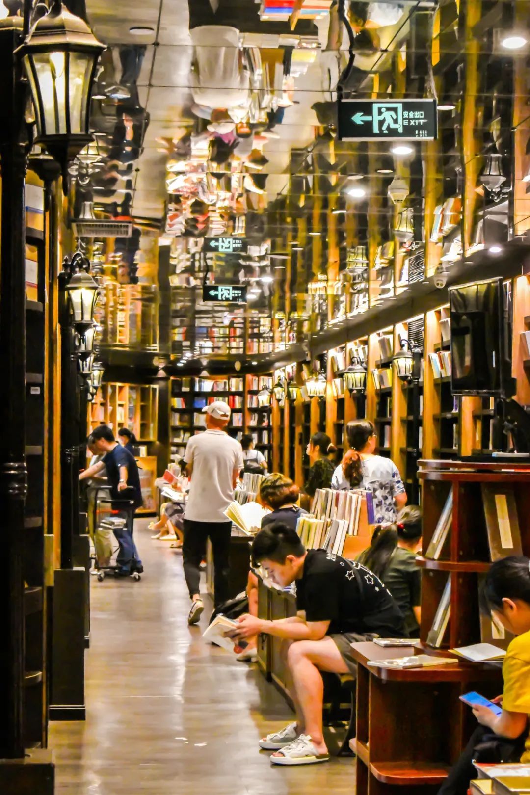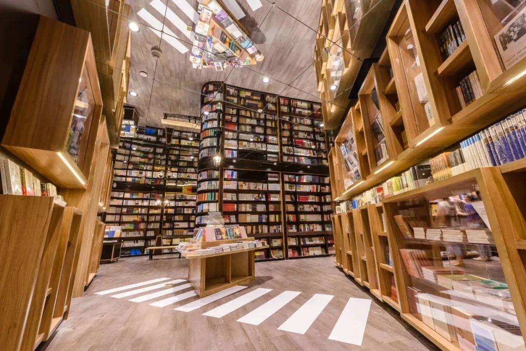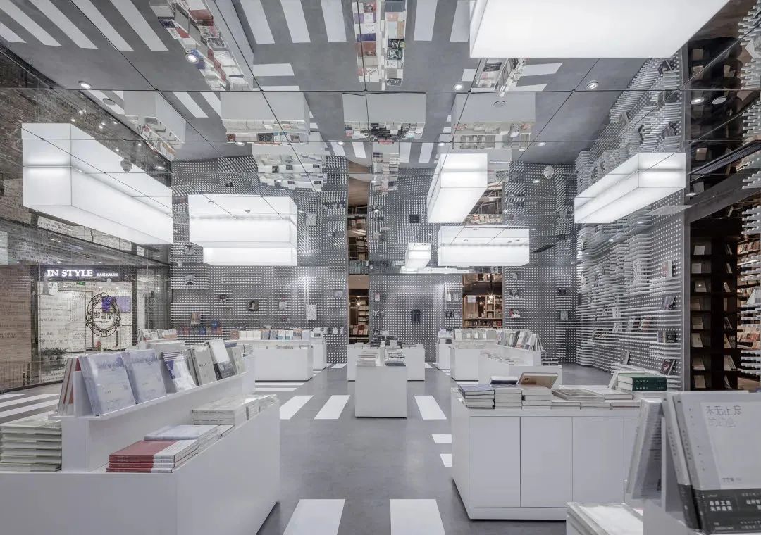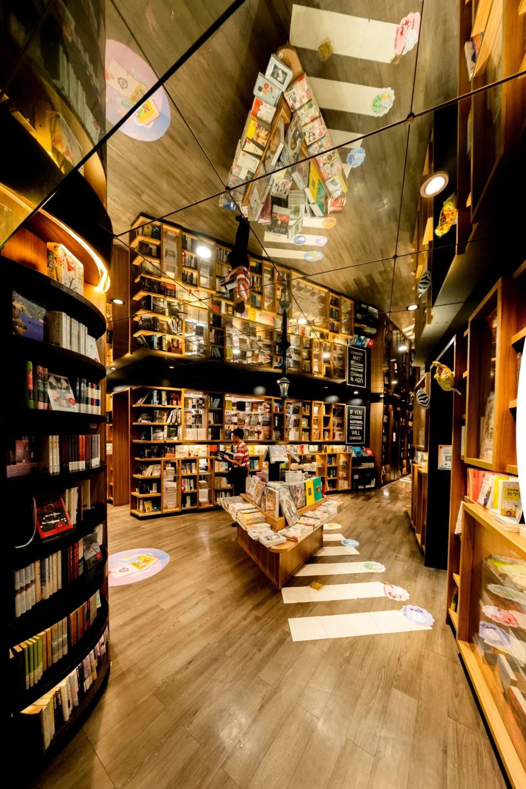 最都市的书店静安钟书阁的位置在静安寺边上,川流不息的马路,高耸入云的大楼,这里几乎是上海最热闹、最繁华的地方,因此“都市”成为了这家书店的关键词。“镜像天花板”,仿佛一抬头就是城市的延伸,汗牛充栋的书柜像一座座没有尽头的高楼,层层叠叠,星罗密布,如同这座城市永不停歇的脚步。