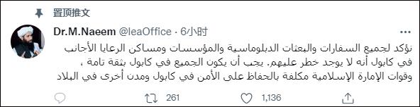 16日凌晨,纳伊姆在推特发文,再次强调了阿塔会保证所有外交机构的安全。