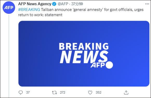 当地时间8月17日,阿富汗塔利班发布声明,宣布对所有政府官员实施“大赦”,呼吁他们回去工作。