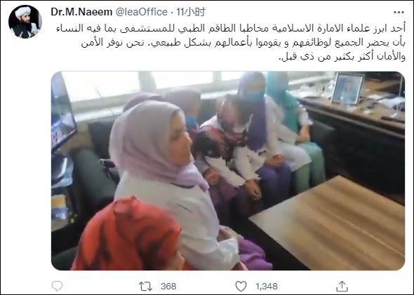 女性可以读书和工作当地时间8月17日,阿塔政治办公室发言人穆罕默德·纳伊姆在推特发布了一则视频,并写道:“塔利班最杰出的学者之一正在向医院的医务人员(包括女性)发表讲话,让每个人都能正常工作。”