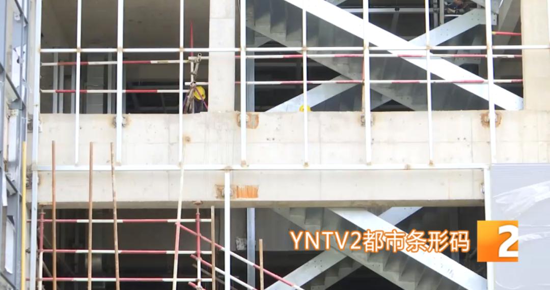 记者跟随一辆工作车辆进入施工现场后,看到的也是一片繁忙景象,工人们各司其职,正在安装建筑外墙的窗户及玻璃,透过脚手架,还能看到建筑内部的一些电梯已经安装完成。