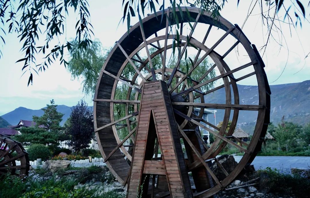 水车是灌溉水稻必不可少的生产工具,旋转的木质水车象征着时来运转、福寿绵延,同时也寓意着朝鲜族人民勤劳勇敢朴实的品质。