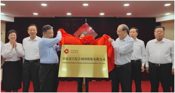 ▲李耀强和杨兴强共同为中盐盐穴综合利用股份有限公司揭牌