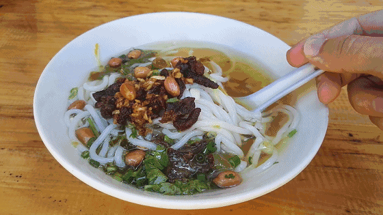 图源网络腌粉则是深色黏稠的浓汤汁,是用清汤做底加蚝油勾芡后,再加工出来的,粉和配料完全浸没在了汤汁中,咸甜的口感加上浓稠的汤卤,各种配料的加入丰富了整个粉的口感!听说加上海南黄灯笼辣酱,更能体会到精髓。