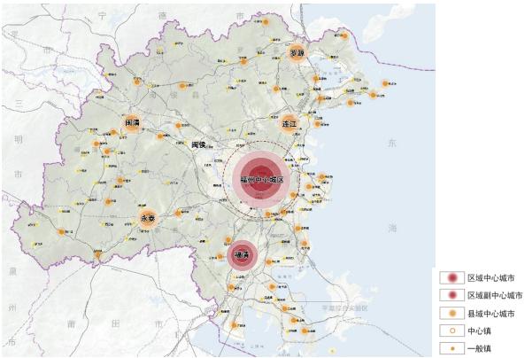 ➢ 县域中心城市:连江、罗源、闽侯、闽清、永泰等县城区