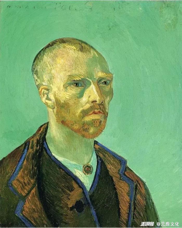 在高更来到阿尔之前,梵高提出艺术家之间交换作品的想法。作为合作的第一步,他画了一幅绿色背景的自画像,送给高更。当他们交换肖像时,梵高因受日本文化影响,所以把自己画成日本僧侣的形象,头发剪得很短,原本的蓝眼珠画成东方人的棕色,瘦骨嶙峋的脸上,紧张的眼神不确定地瞪视着远方。