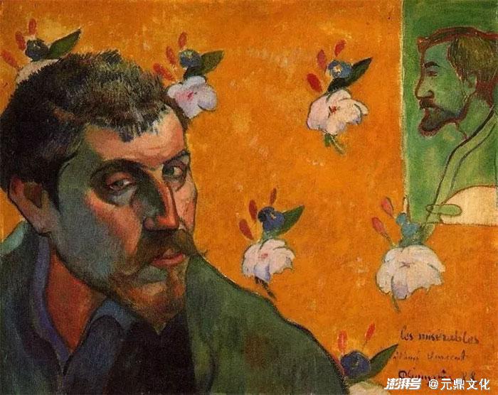 冉·阿让是雨果小说《悲惨世界》中的主人公。他经历过穷困潦倒,也体验过显赫富贵,历尽苦难却始终保持着一颗正直善良之心。高更以冉·阿让自比,还在自己签名的上方写下画的名字:《悲惨世界》(直译为《悲惨的人》)。这幅自画像以鲜花图案的墙纸为背景,好像是“少女的闺房”,被高更解释为“纯洁艺术”的象征。