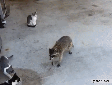 偷猫粮的浣熊/图片来自giphy.com