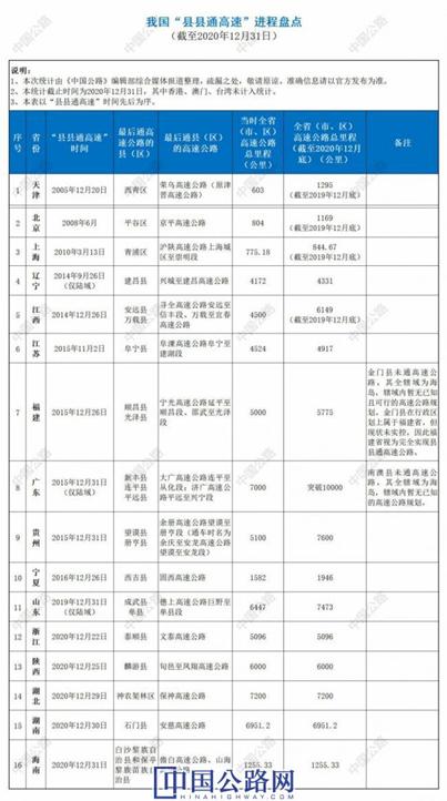 而在今天,县县通高速已经全国各省份的标配了,下图是《中国公路》编辑部进行的统计,到2020年12月31日,中国大陆已经有16个省市实现了“县县通高速”,数量已经过半。