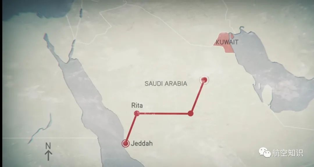 下午5点25分,这架KC-135E拖着150吨的自重向科威特方向飞去,这次任务计划的航路会先飞往东北的Rita航点,右转后向东飞行,在距离科威特边境三百公里处与待受油的E-3“望楼”预警机会合完成加油任务。