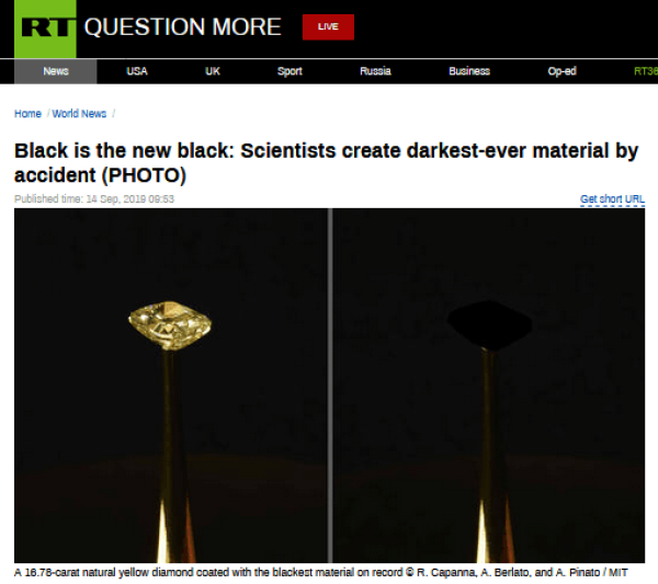 与超白涂料的反射作用不同,最黑材料Vantablack的特点是吸收高达99.995%的入射光。