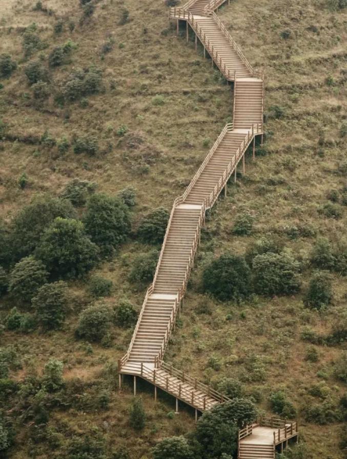 步梯连接着草原的高山,登高望远,就能看见别致的风景。