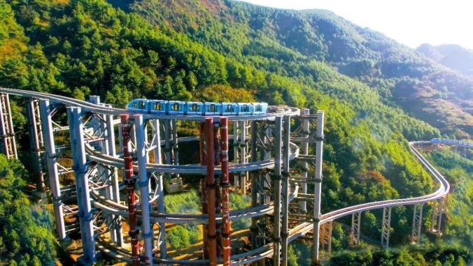 最值得一提的,是玉舍的空中小火车。它是世界首创螺旋盘旋升跨坐式的单轨桥,列车沿着桥梁盘旋而上的奇观,让人迫切的想在火车上体验过山车的刺激。