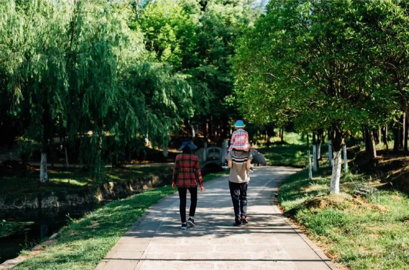 老人们带着孙子来这里看看盆栽、逗逗鸟,中年男人在湖里支起鱼竿享受独处,年轻人们在这里野餐、拍照。