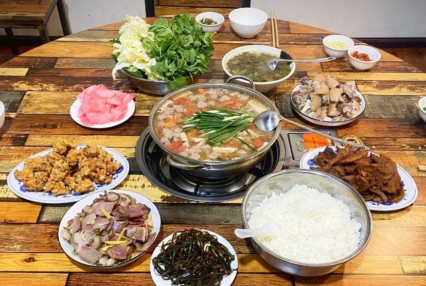 @肥姑小饭桌腊肉、豆米、折耳根、酸菜、酸豇豆、豆腐丝、胡萝卜丝、白菜丝、芹菜、豆芽、火腿肠......想吃什么就放什么,随心所欲,不局限于固定食材。