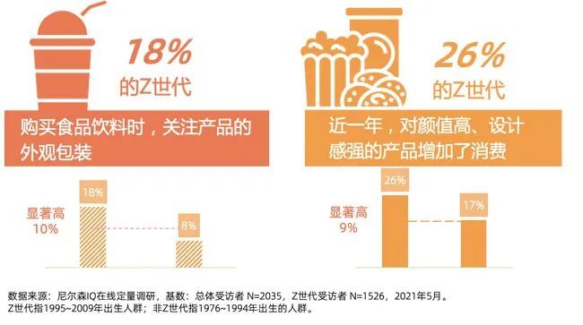 尼尔森IQ调研数据显示,相比非Z世代,受访者中Z世代有明显的“颜控”倾向,在选购食品饮料产品时,他们比非Z世代人群更加关注产品的包装外观。