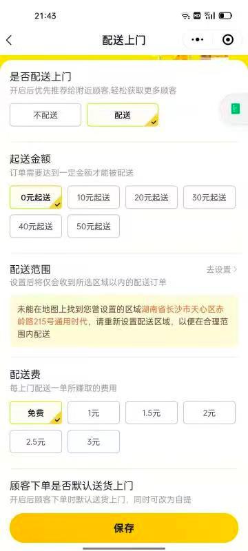 从Tech星球获取的美团优选团长操作的界面看,团长可以选择消费者自提和配送上门两种选择。在配送的选项里,可以自主选择起送金额和配送费两种模式。比如,选择购物满10元即可免费配送,或者每配送一单都需要1元。值得关注的是,两种模式都有0元选项,这也意味着配送区域预计都是小区内,团长一般是闲暇的小区住户,最后赚取售卖商家的利润佣金。