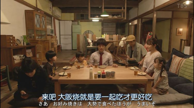 毋庸讳言,《#家族募集》一直在营造着一种“大家庭更好”的温馨氛围,以至连“大阪烧”,也是“一起吃更好吃”。顺便提一句,无孔不入的商家也不想放过蹭热度的机会,位于大阪道顿堀的一家“大阪烧”店就宣称,在本剧播出期间贩售剧中出现的同款美食……