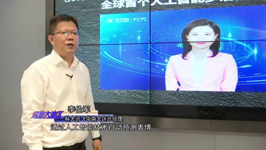 科大讯飞华南大区总经理李伦军介绍,科大讯飞的AI多语种虚拟主播,能根据提供的文字内容,通过人工智能技术自动预测表情,实时合成唇形,不仅会说中文,还会说英语、日语、韩语、泰语、粤语、四川话等30多种外语和方言,永不知疲倦。