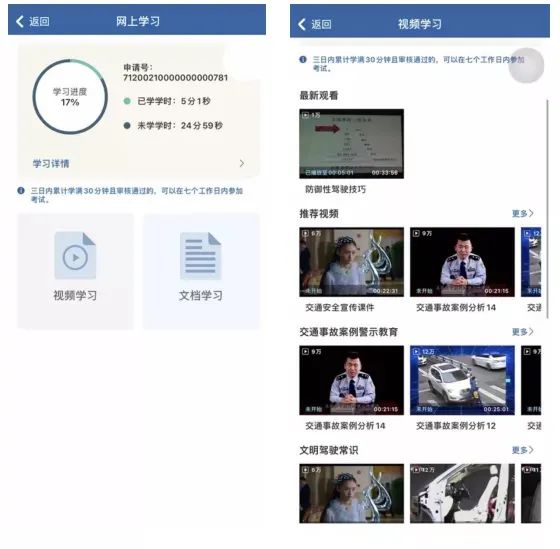 学法减分网上学习1.通过自动审核完成受理的,驾驶人用户点击【学法减分】按钮,进入学习界面。