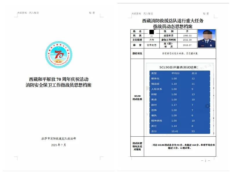支队第一时间组建心理工作服务队,赴全市队伍开展心理疏导活动,开展交心谈心600余人次,依托SCL90心理健康测试小程序,实施执勤指战员思想风险评估工作,建立健全《西藏和平解放70周年庆祝活动消防安全保卫工作指战员思想档案》678份,及时舒缓一线指战员身心压力,真正做到思想稳控不落死角,坚决确保指战员心无旁骛地投身安保工作。战时帮扶慰问暖人心