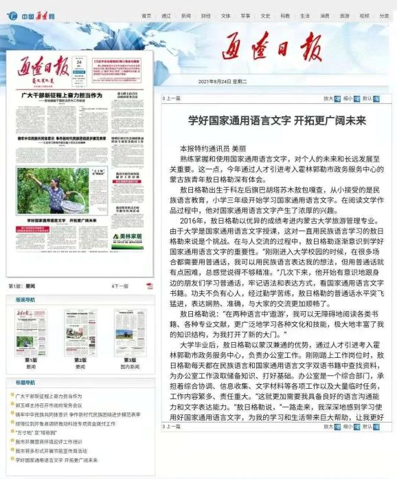 【通辽日报】学好国家通用语言文字 开拓更广阔未来