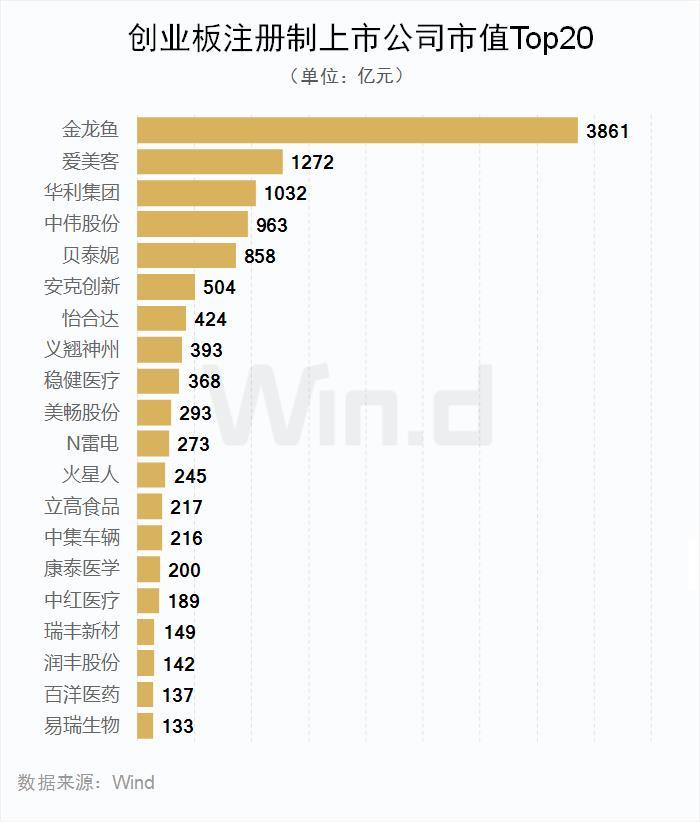 注册制下的金龙鱼、爱美客和华利集团等3家已经位列“千亿市值”公司。